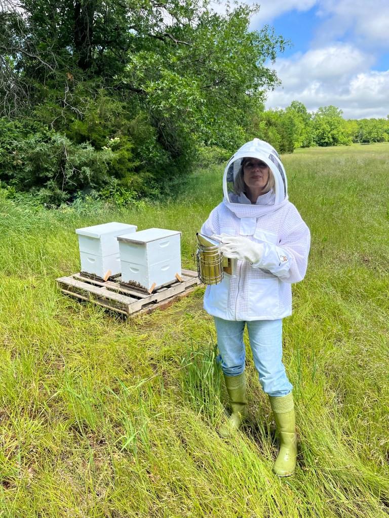 I was pretty proud of myself a couple of weeks ago when I pushed my 800 lb lawn tractor out of the shed and through the mud. Unfortunately, that set off a cascade of issues that ended in a bulging disc in my back. This leaves me in the precarious position of being unable to bend down and unable to lift more than 10 lbs. So… I leaned on Lisa to take care of my bee related chores.