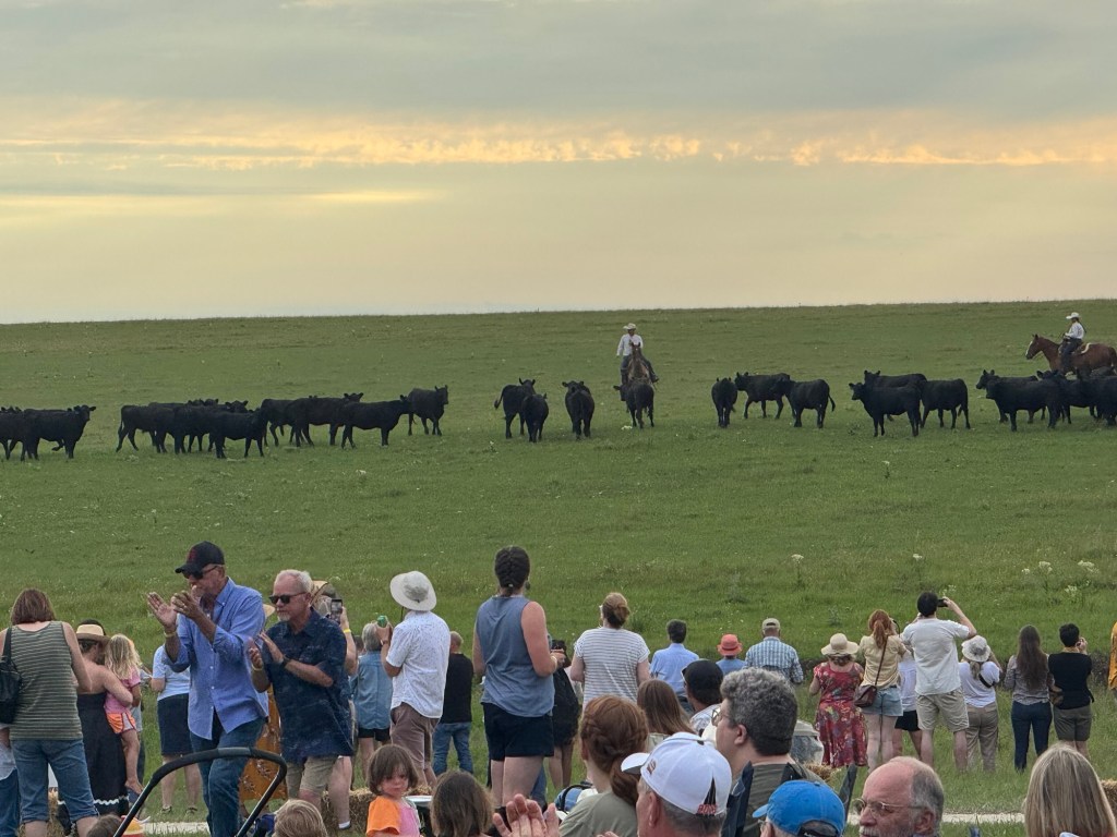 One of the highlights of the evening was the final song played by the symphony and sung by Logan Mize and the entire crowd, Home on the Range. As you can see in the gallery below, the 12 cowboys and cowgirls drove the herd past the singing crowd. It was the ultimate Flint Hills experience.